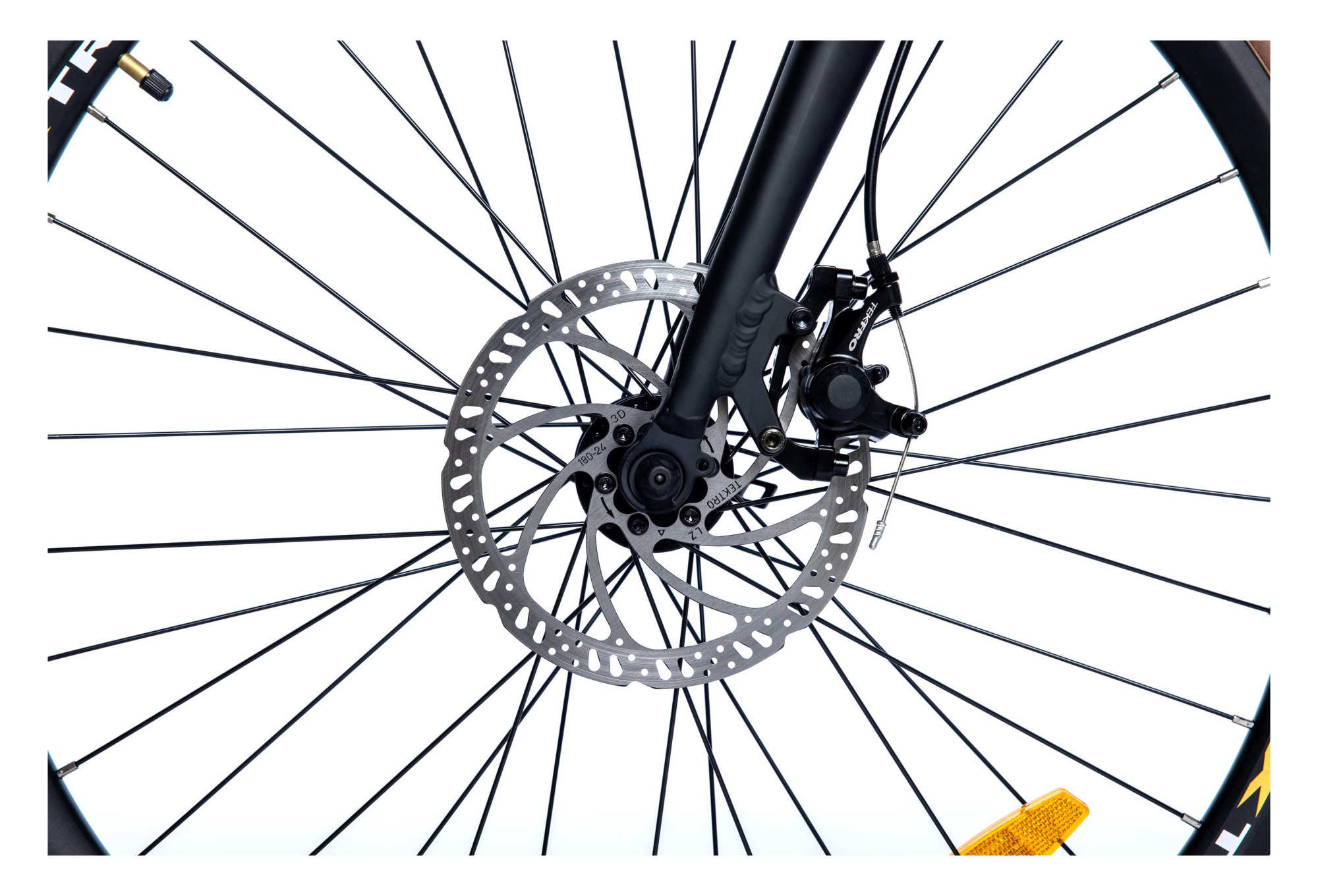 Freins: Pour un freinage puissant et progressif il est équipé de freins à disque TEKTRO (disques de 180mm à l’avant et 160mm à l’arrière). Ils vous permettent de mieux contrôler la puissance de freinage que vous désirez appliquer et de ne bloquer la roue que lorsque vous le souhaitez.