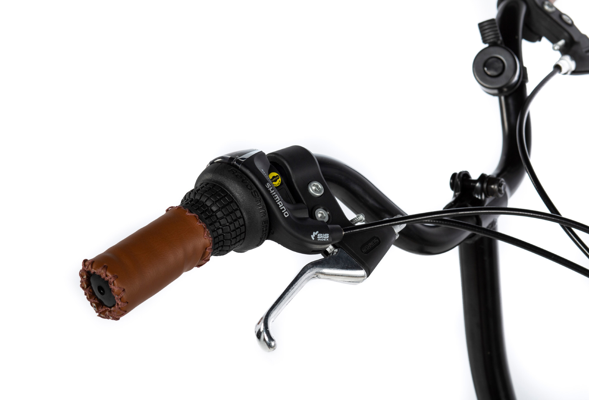 Munie d’un cadre Alu très léger la Top Class s’adapte a tout parcours grâce a ses 6 vitesses SHIMANO. Vélo 100% urbain, roues de 24” et comme tous nos vélos de ville, garde boue, béquille, porte bagage, selle confort. Les éléments pliants sont guidon / pédales / ainsi que le cadre qui se plie en 2. Comme le modèle Hollanda ce vélo a été conçue pour une position confortable (dos droit) qui apporte une meilleure maniabilité ainsi qu une meilleure visibilité Il est recommandé pour des personnes entre 170cm -195cm