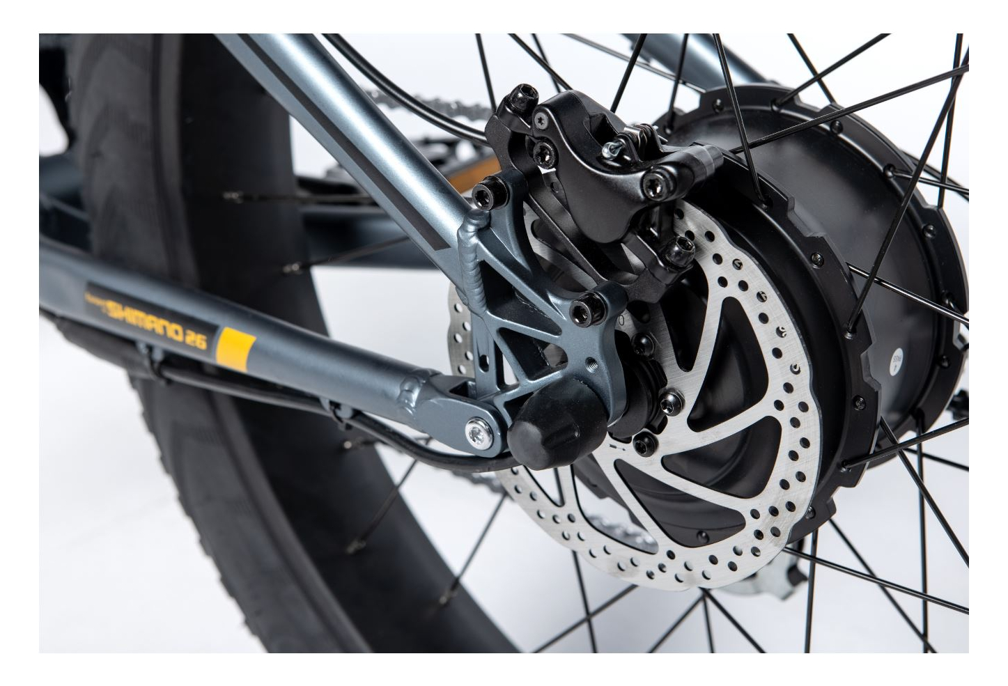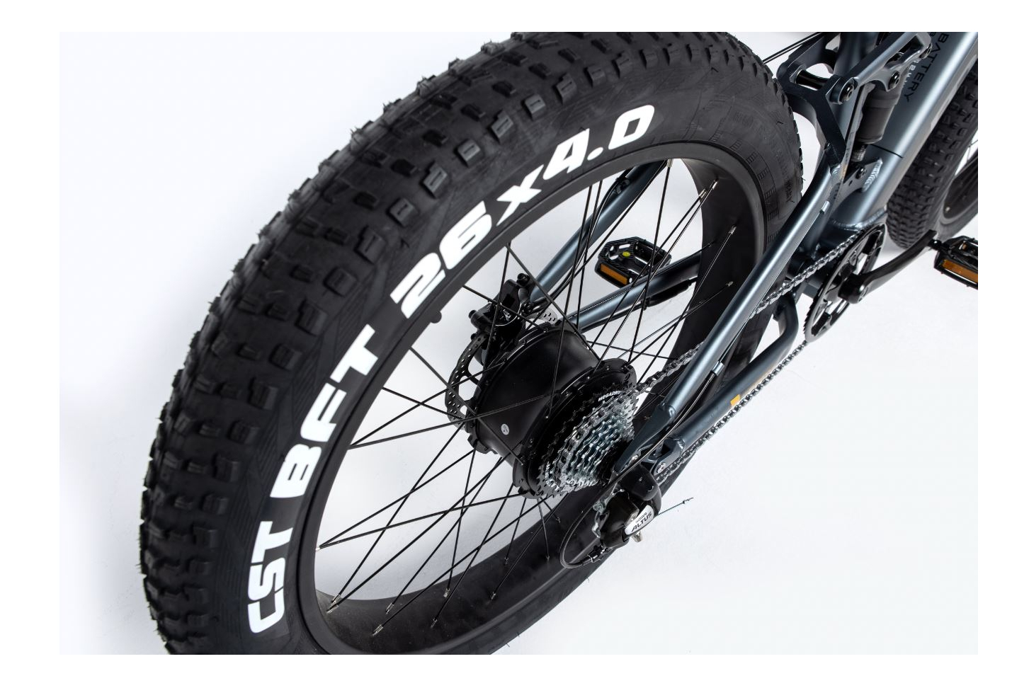 La structure de ce FATBIKE électrique est assez similaire à notre gamme E-MTB, mais sa fourche est plus large dû à la taille de ses roues. Les pneus sont également conçus pour maintenir la stabilité sur un type de terrains ”difficiles.”