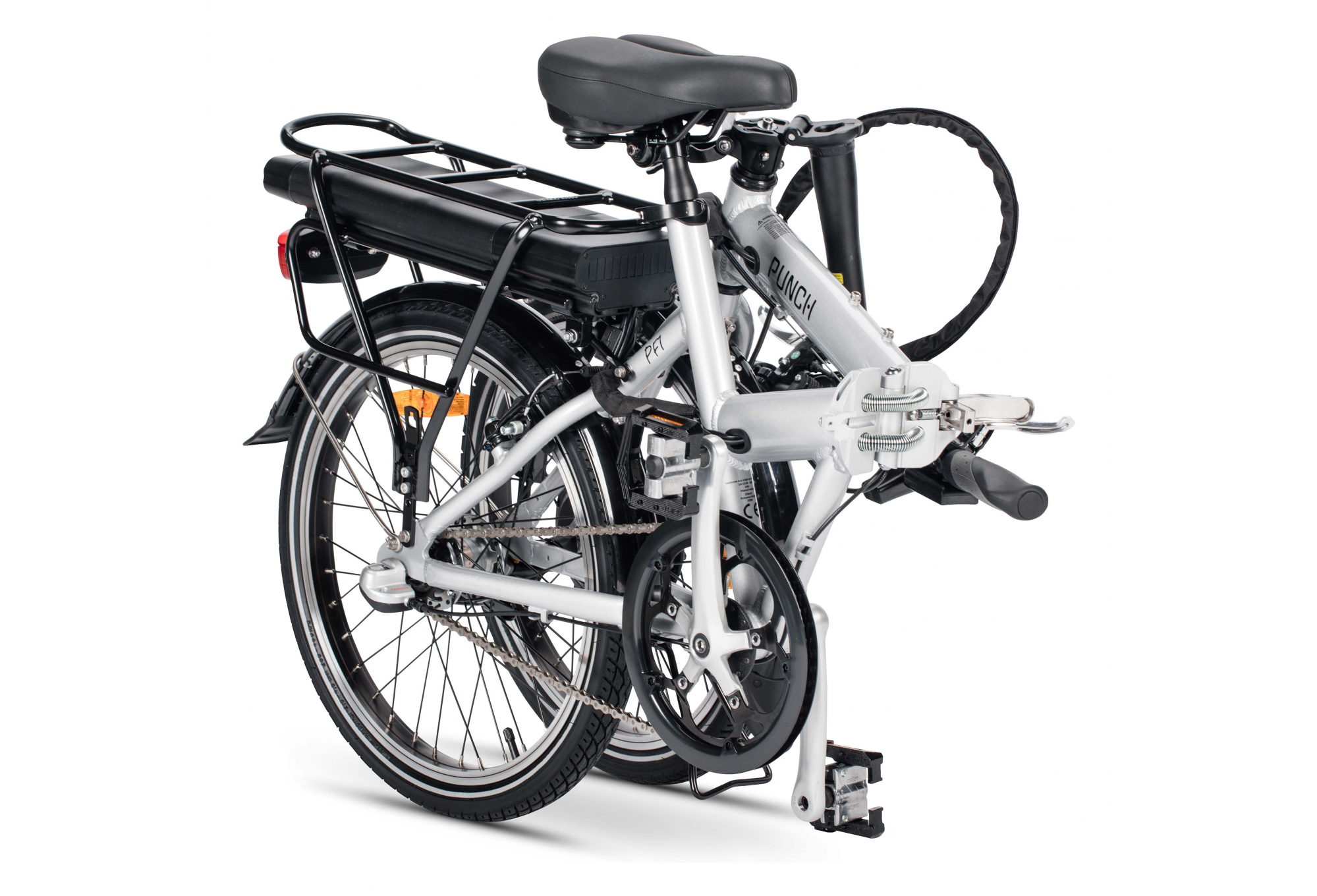 le modèle PUNCH PF1 est un vélo électrique pliant équipé d’un moteur positionné dans la roue avant et d’un système de transmission interne Shimano Nexus disposant de 3 vitesses, permettant le passage des vitesses même à l’arrêt. Idéal pour une utilisation urbaine, où les démarrages sont fréquents.